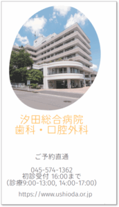 電話:045(574)1362(汐田総合病院 歯科・口腔外科直通)にご連絡ください。(休診日を除く)