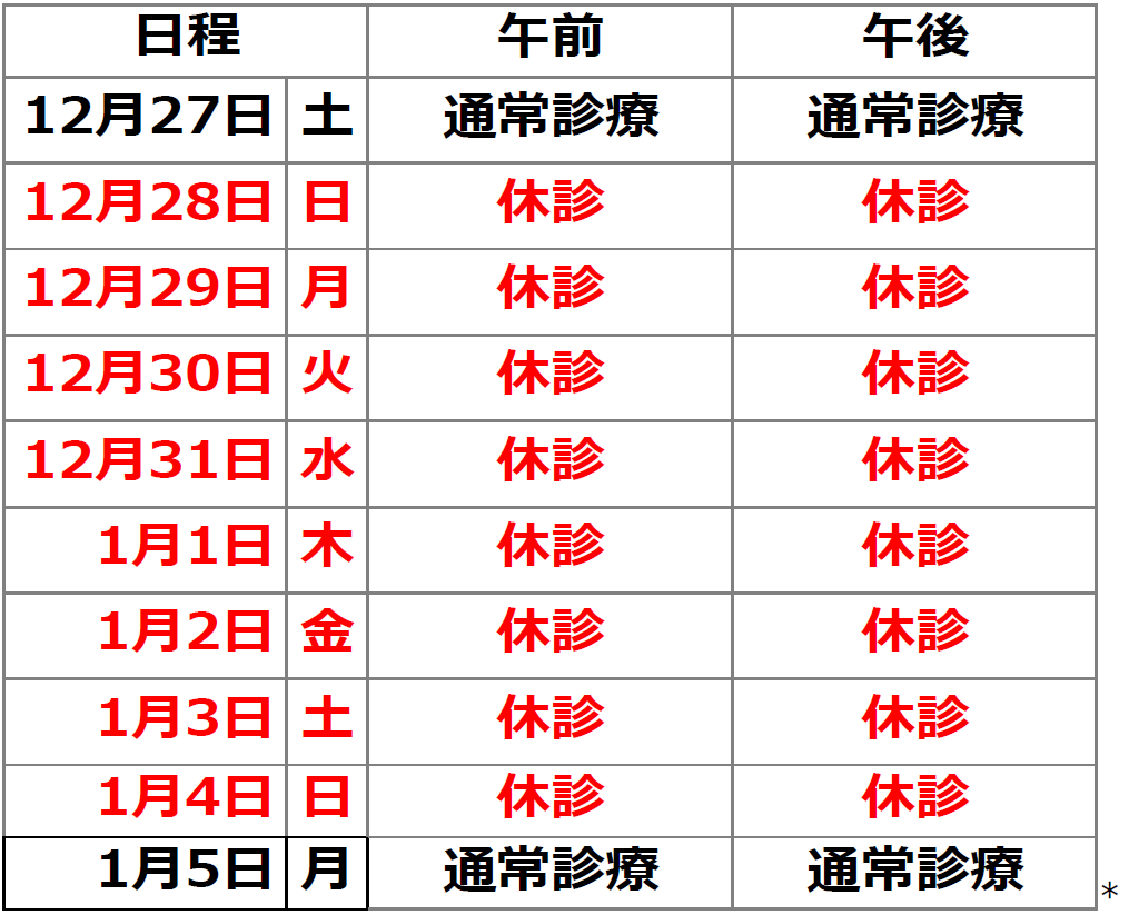 *12 月31 日は、隣接するうしおだ在宅クリニックにて午前診療を行います。